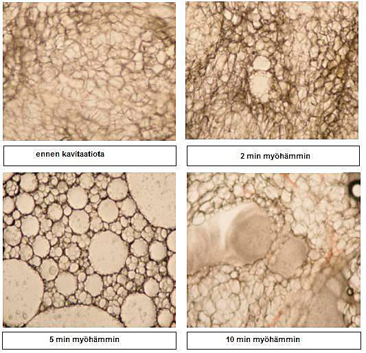 Ultraäänellä saadaan aikaan kavitaatio nesteessä ja kavitaatiokuplien puhjettua rikkovat ne rasvasolukkoa. Rasvasoluista vapautunut rasva muuntuu glyseroliksi sekä vapaiksi rasvahapoiksi. Poistuminen elimistöstä tapahtuu luonnollisesti aineenvaihdunnan kautta. Tehoa parantaa se, että käsitellyt rasvasolut poistuvat kehosta lopullisesti.