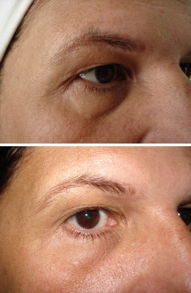 Tummia silmänalusia Toisin kuin laserhoidoissa, voidaan RF-Lliftingi:lla hoitaa